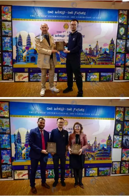 在展覽現場,法國布裏地區尚特盧市市長奧利維耶-科萊索先生,黑山共和國前文化部部長斯涅紮娜-托馬諾維奇女士,黑山波德戈裏察城市社會福利局局長斯特凡-韋紹維奇先生,以及藝術家濟濟一堂,共同見證這一國際藝術盛會。為表彰在推動國際藝術交流中作出突出貢獻的代表人物,組委會特別授予奧利維耶先生、斯涅紮娜女士和斯特凡先生“推廣大使”榮譽稱號。